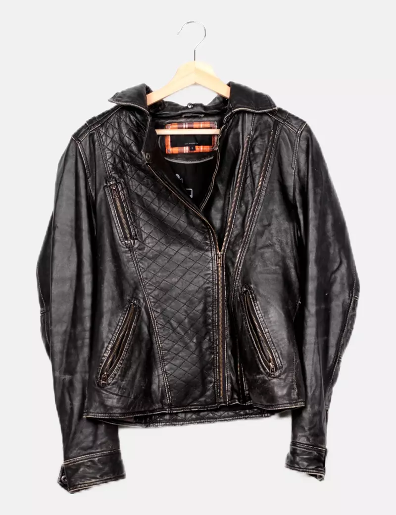 COMPANY AND COCazadora biker negra efecto desgastado