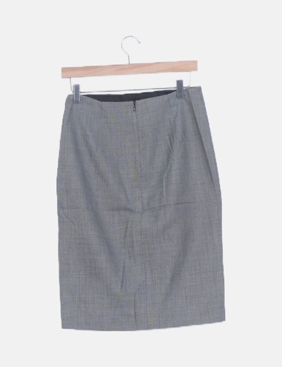 Falda midi gris jaspeadaMango