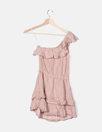 BershkaVestido rosa manga asimétrica
