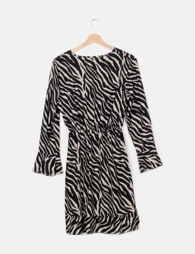 New FantasyVestido animal print negro y beige