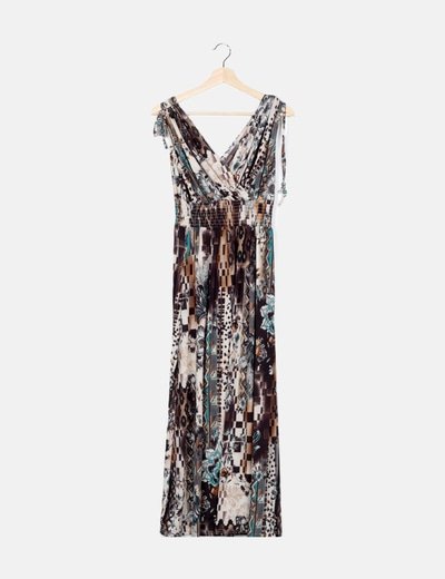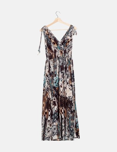 NoNameVestido marrón estampado