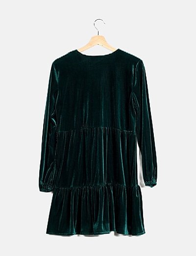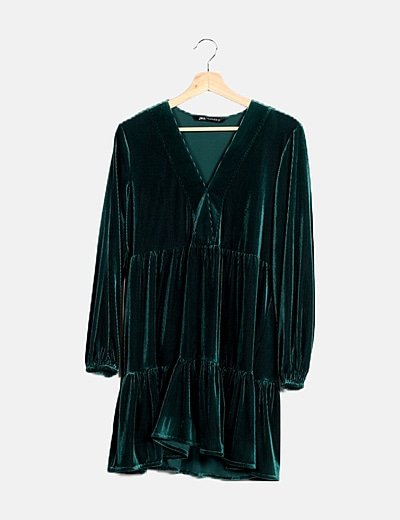 Vestido verde velvet escote pico