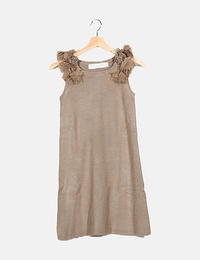 Vestido beige detalle hombreras